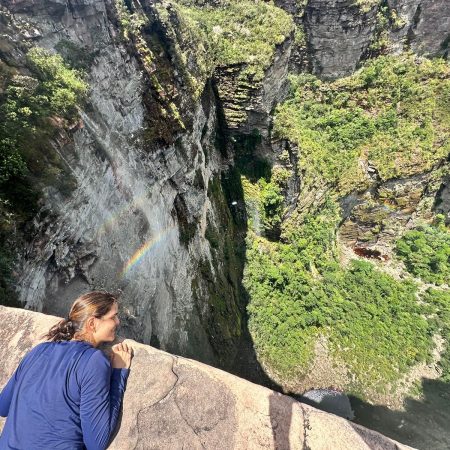 O grande espetáculo da natureza nos espera no último dia. Serão 16 km até o Mirante do Cachoeirão por Cima, onde nos deparamos com uma das vistas mais impressionantes da Chapada: um paredão de quase 300 metros de altura, com suas quedas d’água formando um espetáculo hipnotizante — especialmente na época das chuvas. Após contemplar esse colosso natural, seguimos rumo à saída pelo Aleixo, concluindo a expedição com o coração cheio e a alma renovada. Retornamos para Lençóis no final do dia, levando na bagagem memórias que vão durar para sempre.